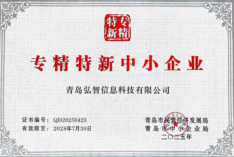 青島弘智信息科技有限公司再度榮膺"專精特新中小企業"稱號——以創新驅動發展,以專業鑄就卓越
